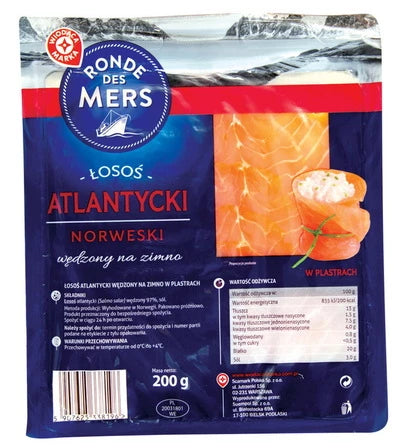 WIODĄCA MARKA Łosoś atlantycki norweski wędzony na zimno w plastrach 200 g